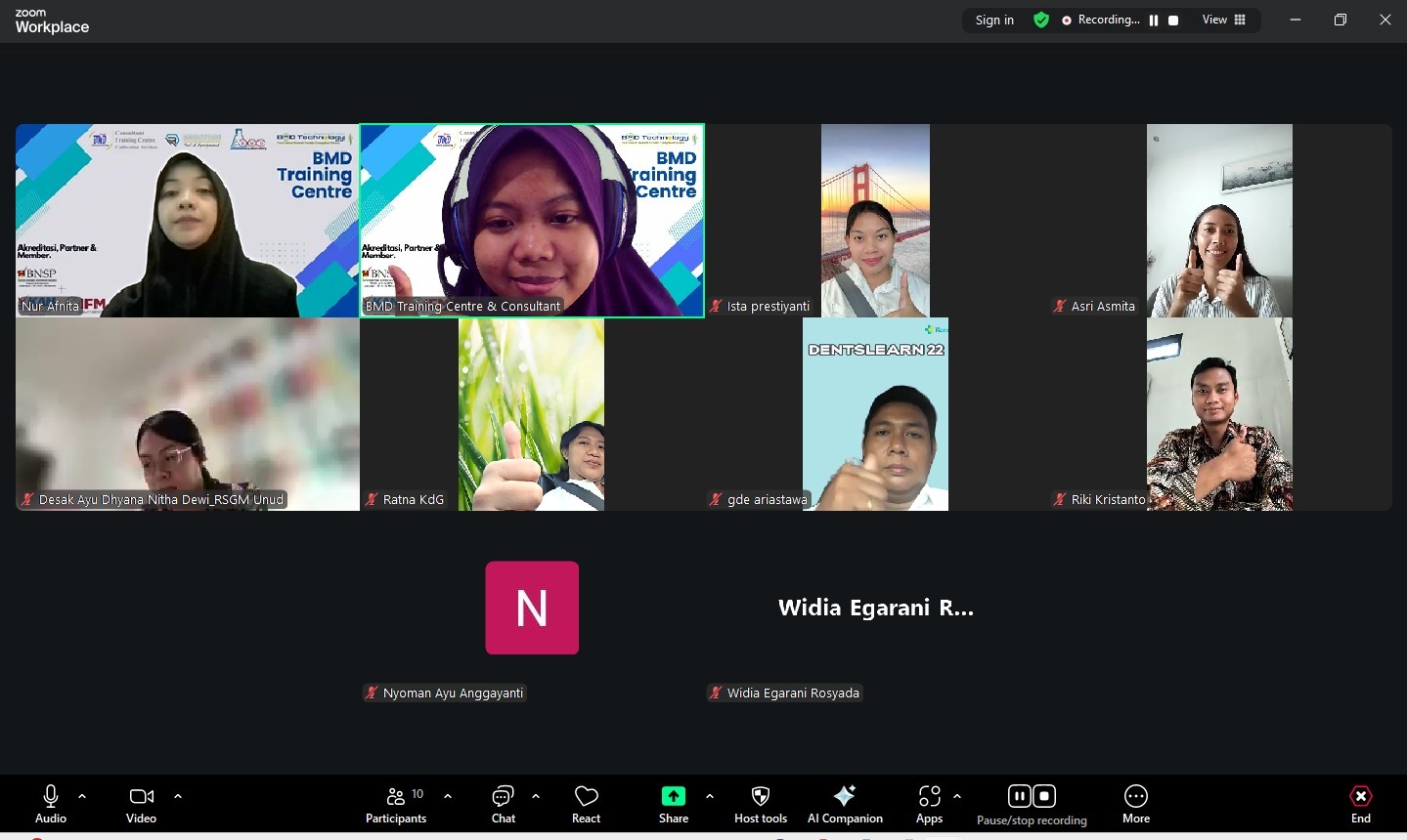 Pelatihan diselenggarakan secara online melalui Zoom Meeting, memungkinkan proses pembelajaran yang efektif, interaktif, dan tetap fleksibel tanpa mengurangi kualitas materi maupun diskusi teknis.
