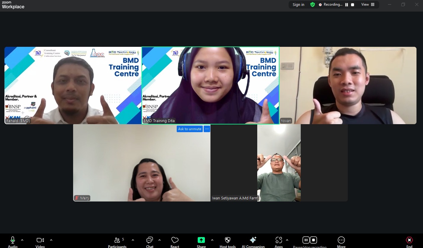 BMD Training Centre telah sukses menyelenggarakan Training Cara Pembuatan Kosmetik yang Baik (CPKB) / GMP Kosmetik secara online melalui Zoom Meeting. Pelatihan ini dirancang untuk membantu perusahaan kosmetik dalam memenuhi persyaratan regulasi BPOM, meningkatkan mutu proses produksi, serta mendukung integrasi sistem mutu seperti ISO 9001 dan ISO/IEC 17025 pada kegiatan pengujian dan pengendalian mutu kosmetik.