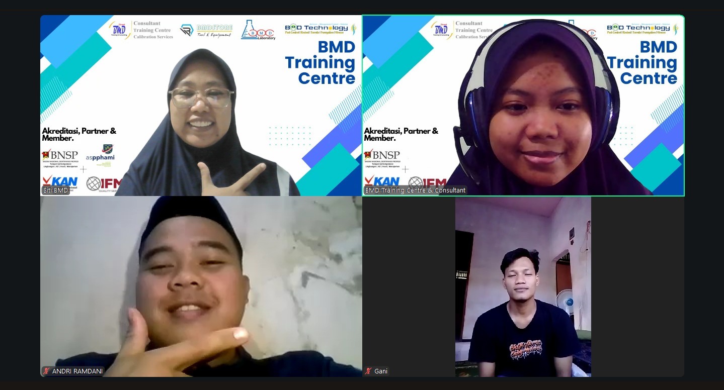 BMD Training Centre telah menyelenggarakan Pelatihan Online Food Handler (Penjamah Makanan) pada tanggal 01–02 September 2025. Pelatihan ini dilaksanakan secara online melalui Zoom Meeting, sehingga peserta dapat mengikuti kegiatan secara fleksibel tanpa mengurangi kualitas penyampaian materi.