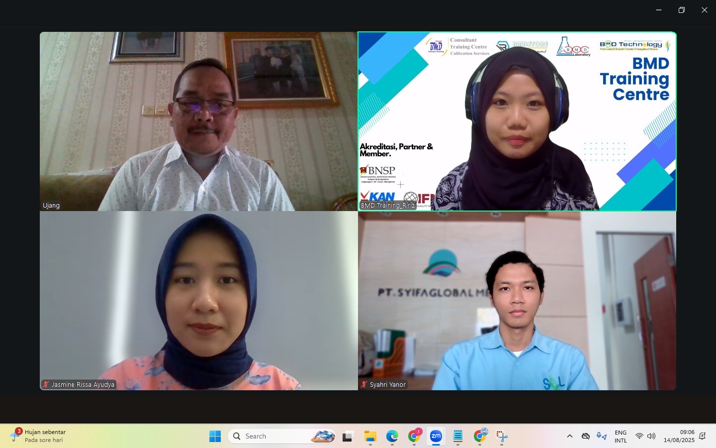BMD Training Centre telah berhasil menyelenggarakan Pelatihan Online ISO 17025: Implementasi dan Persiapan Akreditasi ISO/IEC 17025:2017 pada tanggal 12–13 Juli 2025. Pelatihan ini dilaksanakan secara online melalui Zoom Meeting, sehingga memungkinkan peserta mengikuti pelatihan secara efektif tanpa mengurangi kedalaman materi dan interaksi dengan trainer.