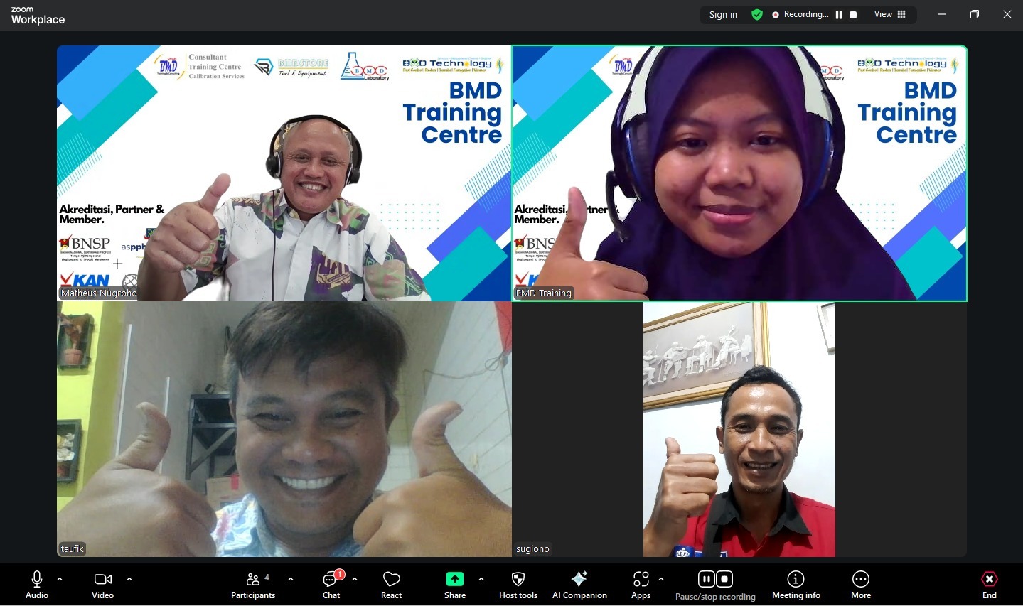 BMD Training Centre telah sukses menyelenggarakan Online Training Teknik Kalibrasi Massa, Suhu, Dimensi, dan Volumetrik yang merupakan merger Training Teknik Kalibrasi Alat Ukur Dasar, pada tanggal 16, 18, dan 19 Desember 2025. Pelatihan ini dirancang untuk meningkatkan kompetensi teknis personel laboratorium dan industri dalam melakukan kalibrasi alat ukur secara akurat, konsisten, dan sesuai standar ISO/IEC 17025:2017.